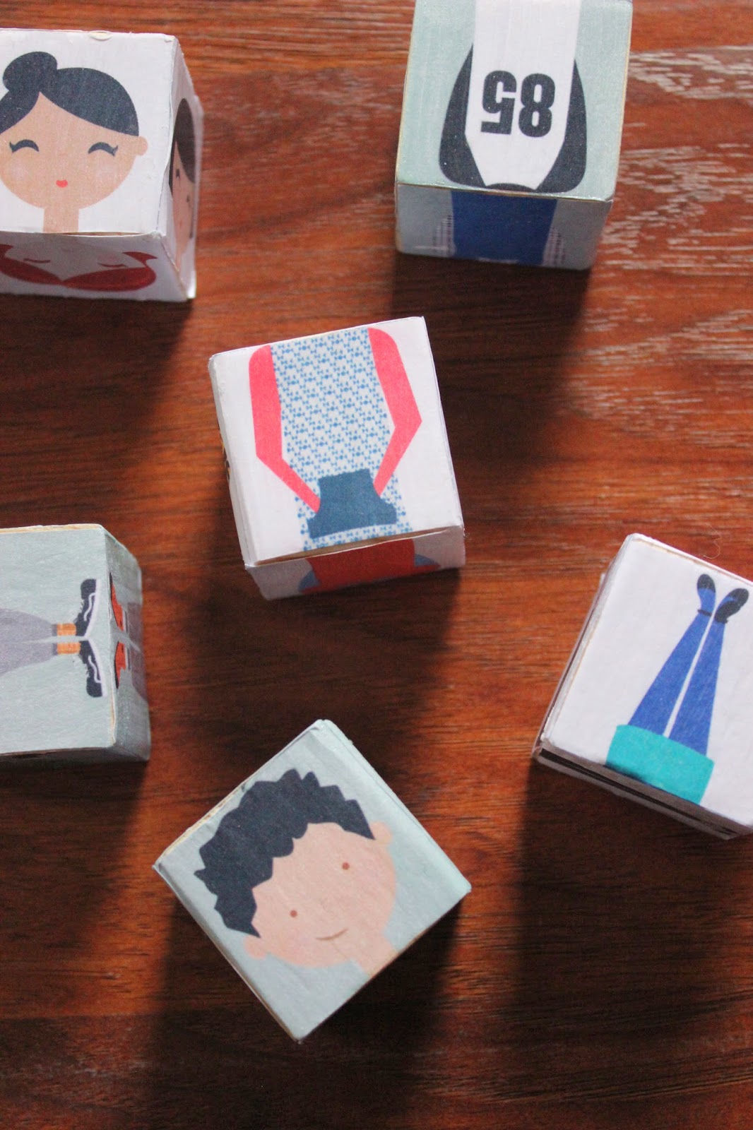 I cut all of the pieces for the blocks with my knife and separated them into the appropriate piles for each block (boy feet together, girl heads together, etc.).