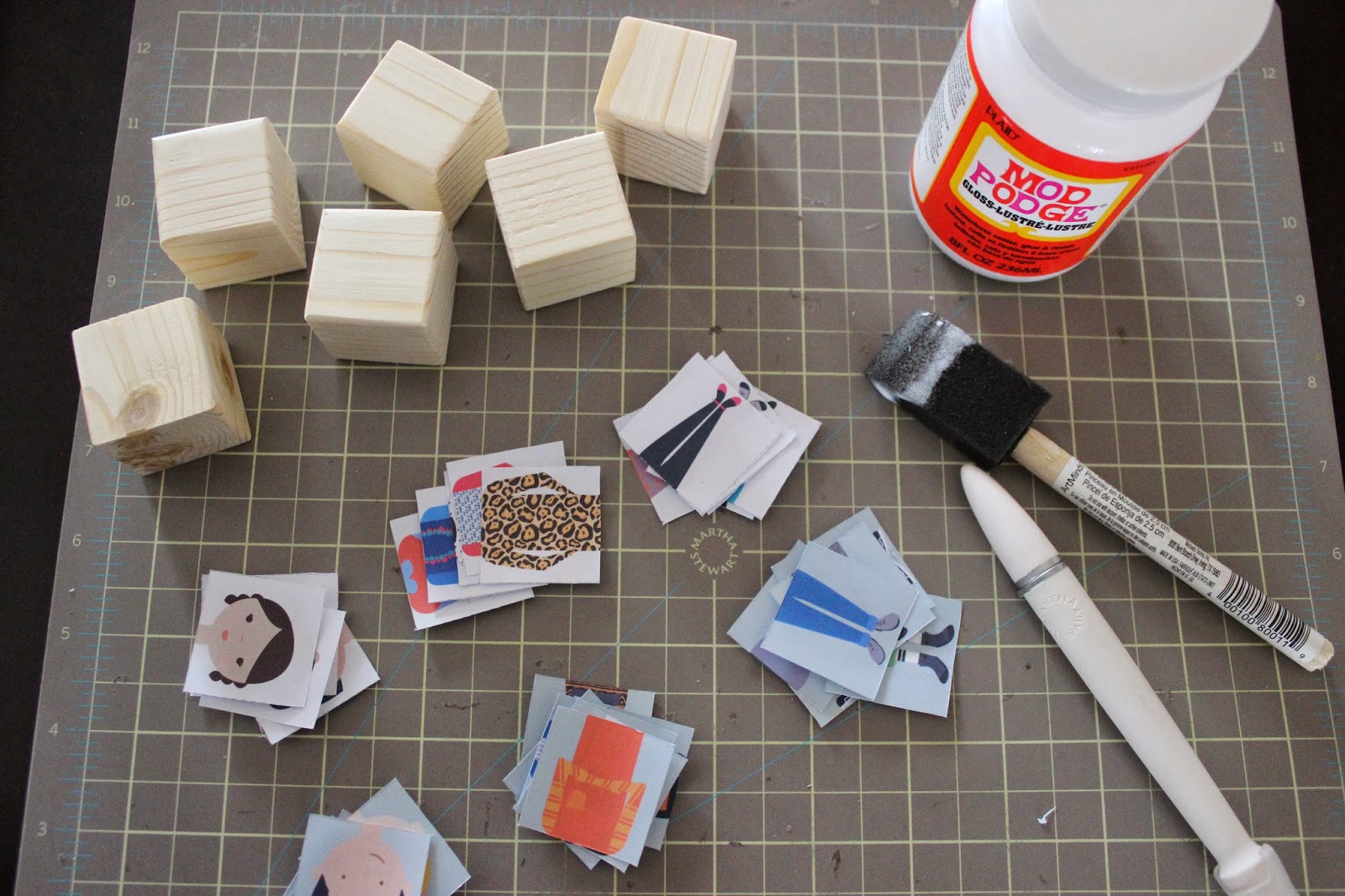 Once I had my blocks ready, I grabbed my mod podge and a foam brush.