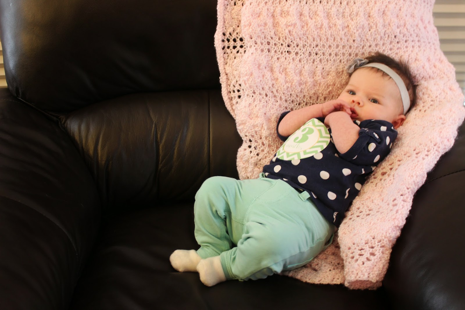 She is playful and happy. Loves when grandma and Daddy whistle. She’s gaining core strength every day. She hates tummy time, but its motivating her to roll off her belly. She still protests her naps, but she sleeps a glorious 8 hours (at least!). She loves to smile and she’s perfecting her giggle. Lots of exploring. Loves to sit in new rooms in the house. She goos and coos regularly. Makes eye contact. Recognizes mommy and daddy’s faces. Loves her sparkly purple pants! (oh wait… maybe that’s me…). She still loves baths, daddy, sleeping, and more recently sticking her entire fist in her mouth. So far month three is the best month ever.