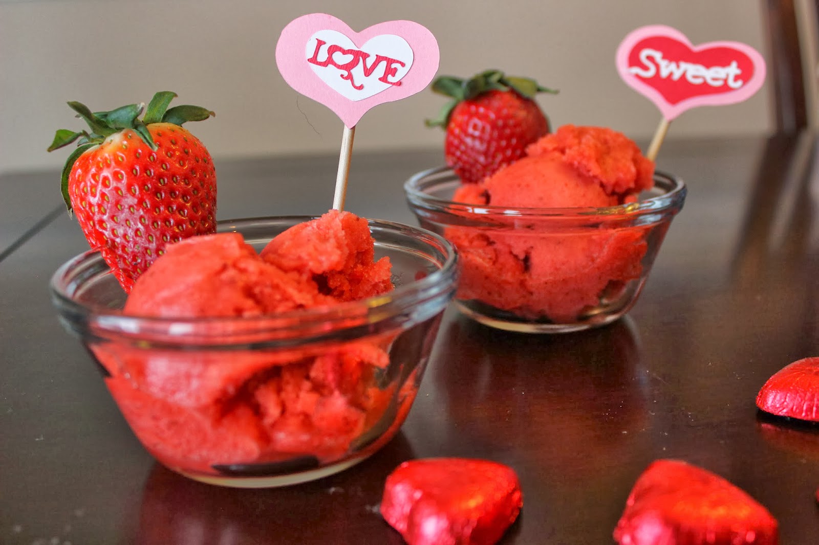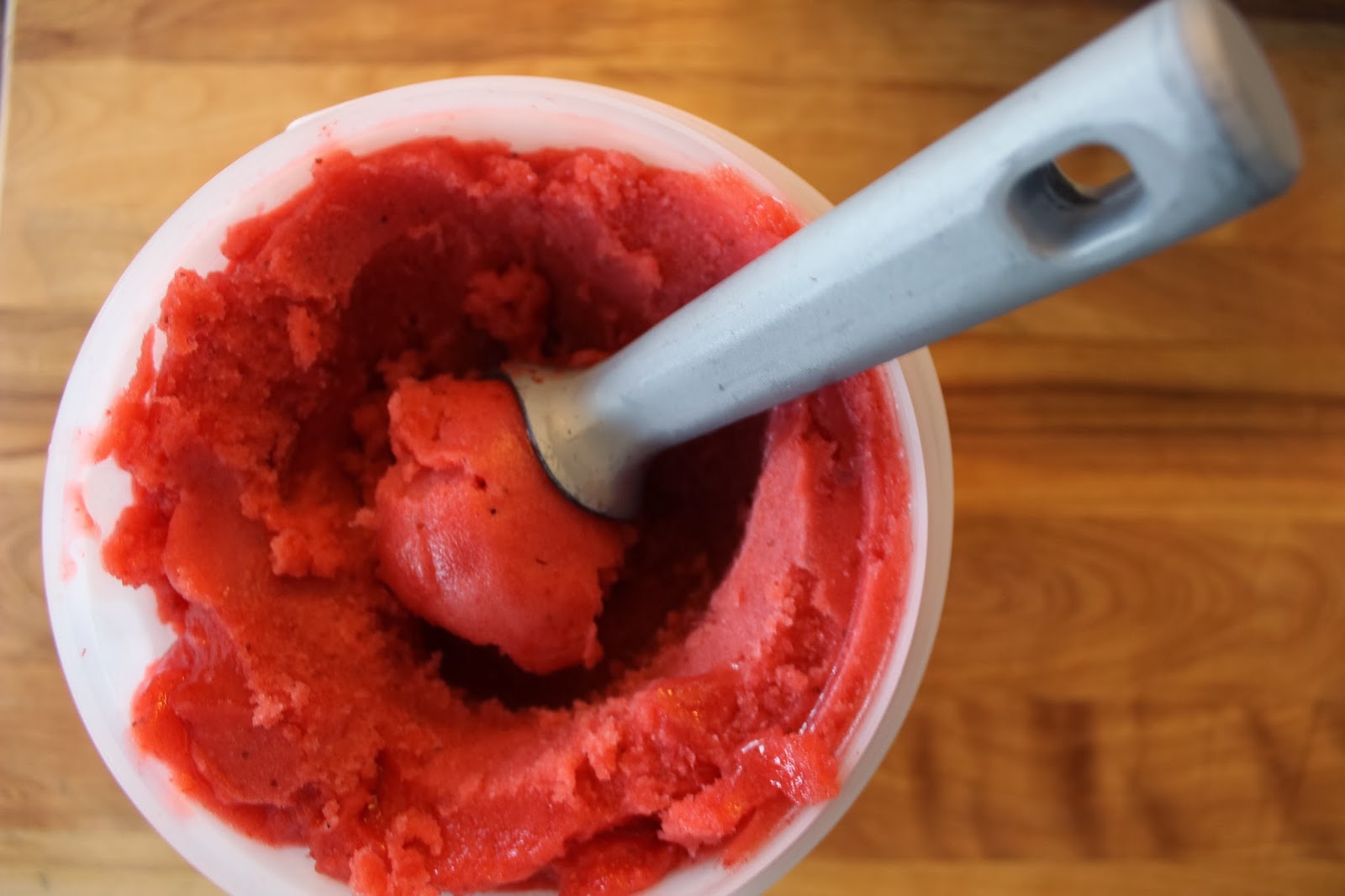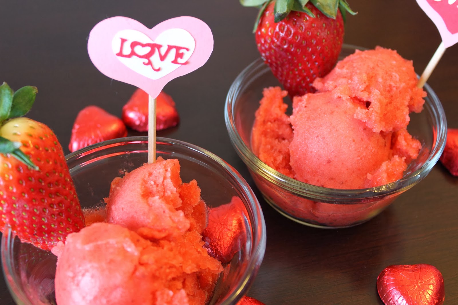 As soon as I opened the fridge and eyed our fresh strawberries, I knew I had to make a delicious strawberry sorbet!