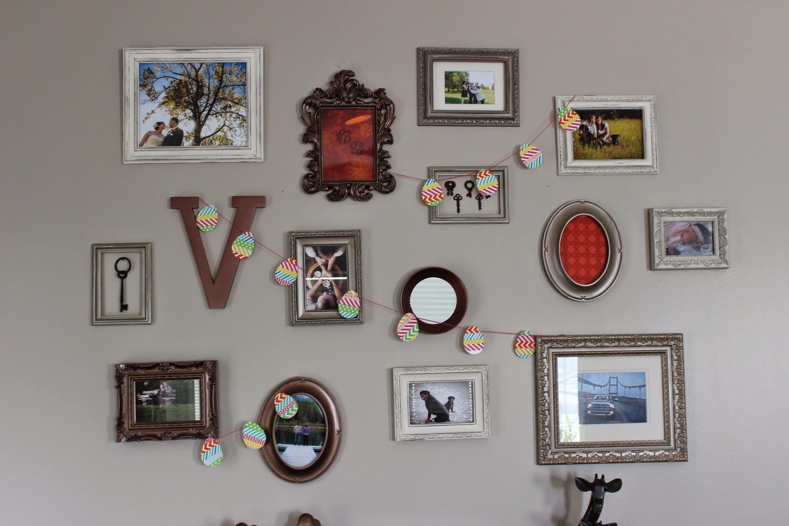 Then I hung the simple garland all over my photo wall using embroidery string :)