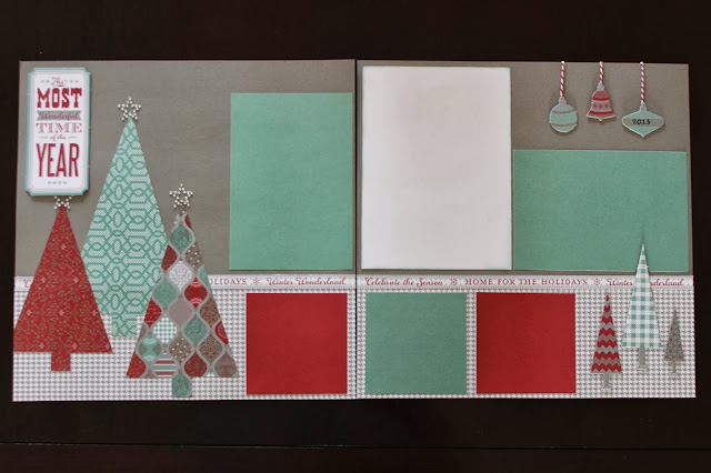 In preparation for a ultra busy December and January, I pre-made a few scrapbook pages.